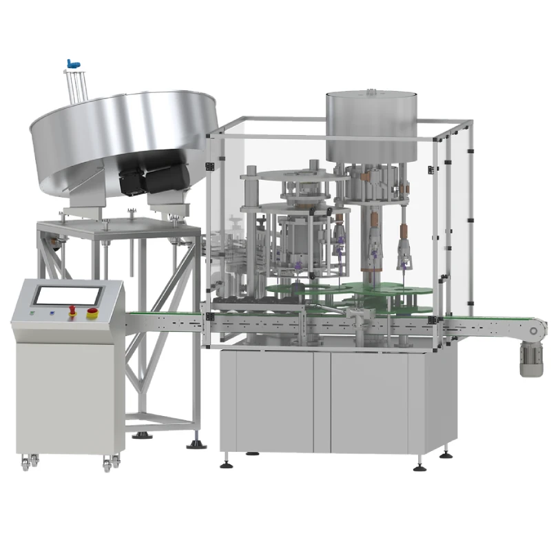 The Automatic Capping Machine with Cap Feeding is a great industrial solution designed for seamless and efficient bottle sealing. This automated system integrates cap feeding, streamlining the capping process. With precision and speed, it ensures a consistent application of caps, enhancing production efficiency. This technology minimizes manual handling, providing a reliable and user-friendly solution for businesses seeking streamlined packaging operations.