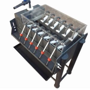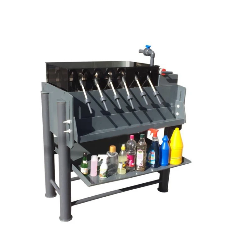 The Manuel liquid filling machine is designed to efficiently fill various types of liquids,including chlorine. Its body is constructed using PVC, which provides enhanced safety due to its high-grade materials.